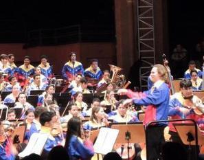 Pour son deuxième concert à Toulouse, mardi soir à la Halle aux Grains, l’Orchestre de jeunes Teresa Carreno du Venezuela (du nom d’une pianiste célèbre) surprend et enthousiasme une nouvelle fois le public. Après avoir fait preuve d’une maîtrise technique de haut vol dans un programme classique d’œuvres de Berlioz, Falla et Tchaïkovski, la formation dirigée par Christian Vasquez enfile dans la pénombre (la salle est éteinte un court instant) des blousons aux couleurs du drapeau de son pays. Durant vingt minutes, les jeunes musiciens vont enchaîner une série de mambos et danses très rythmées, pour le plus grand plaisir d’un public de 2000 personnes qui tape dans les mains.