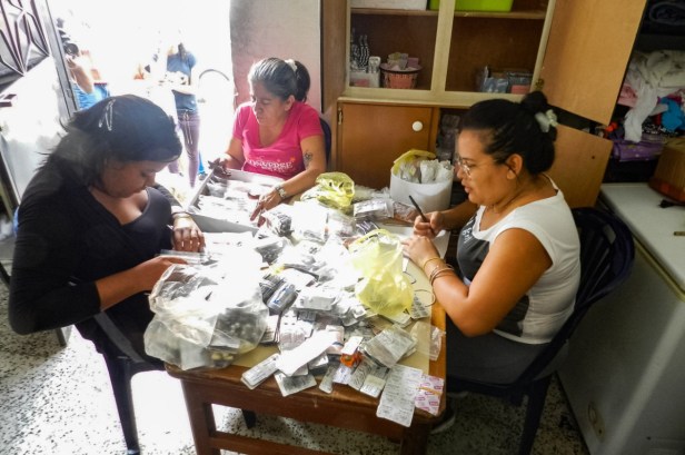 Betsy Rebolledo découpe des ampoules de médicaments tout en s’assurant, encore et toujours, que tous les noms et toutes les quantités des médicaments soient bien inscrits sur la feuille de calcul.